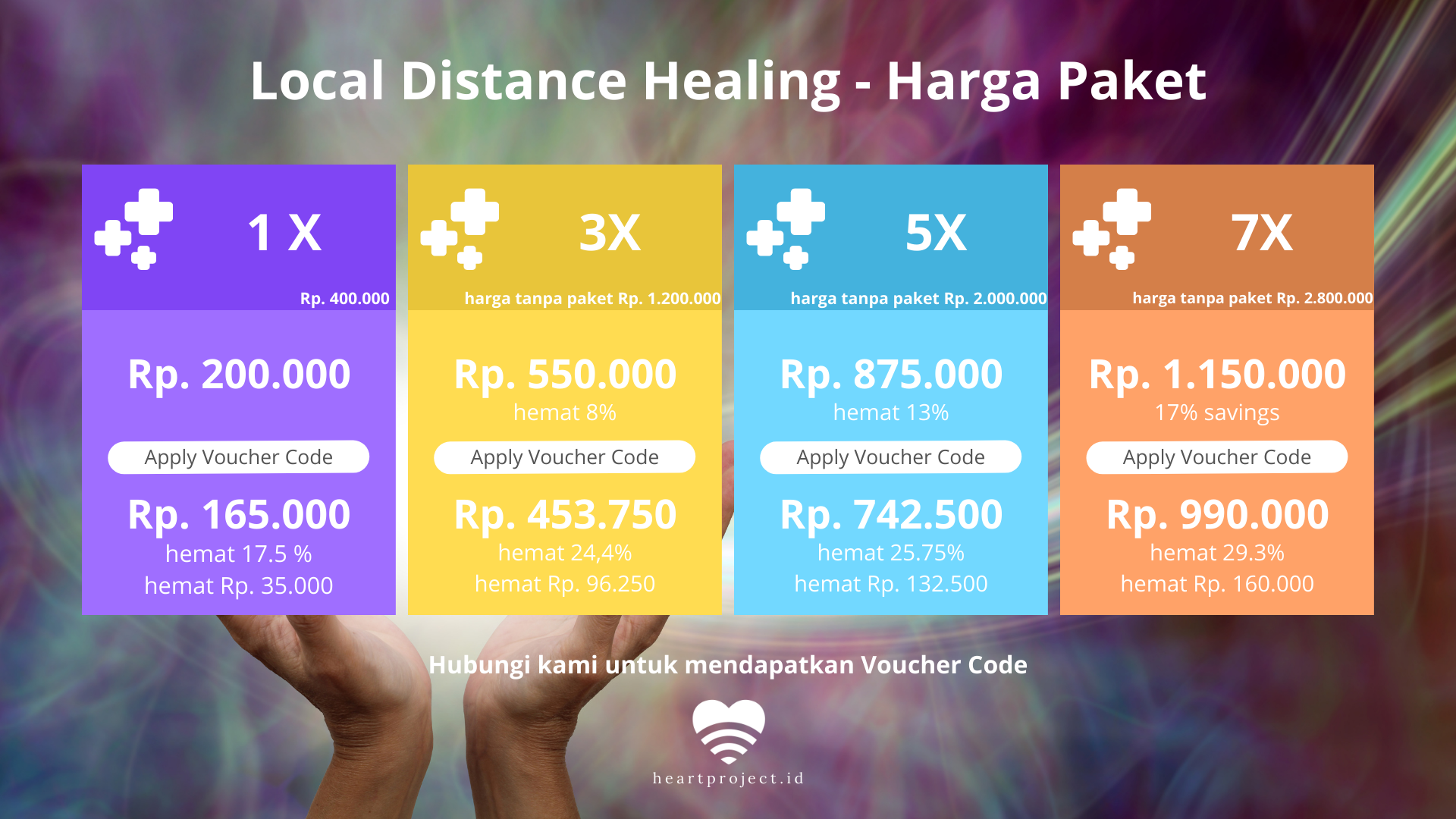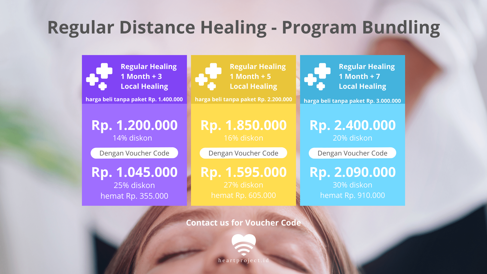 Cobalah Distance Healing gratis kami 2x seminggu setiap hari Kamis dan Minggu jam 21 WIB. Try Free Distance Healing 2 times a week for a month every Thursday and Monday at 9PM GMT+7.